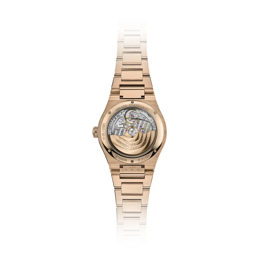 Hodinky Girard-Perregaux Laureato 42mm vynikají sofistikovaným designem a mistrovským zpracováním, které osloví milovníky luxusu. Kulaté pouzdro o průměru 42 mm je vyrobeno z exkluzivního 18karátového růžového zlata, stejně jako elegantní luneta a integrovaný růžově zlatý pásek, který dokonale ladí s celkovým vzhledem hodinek.