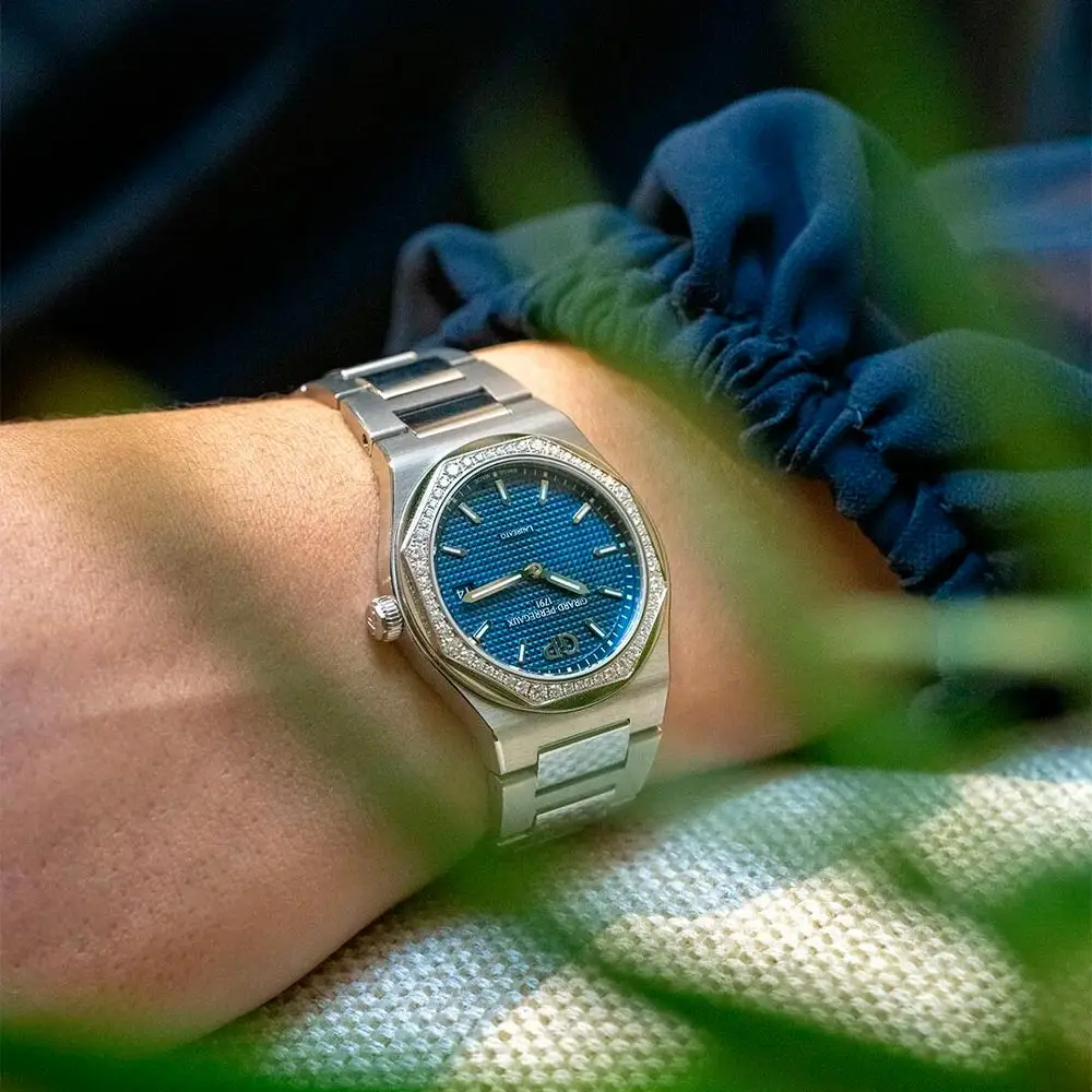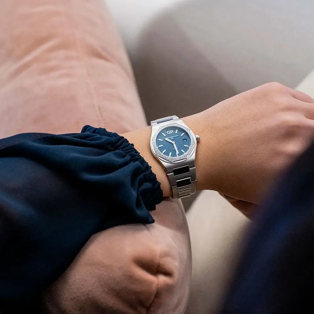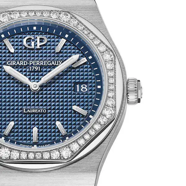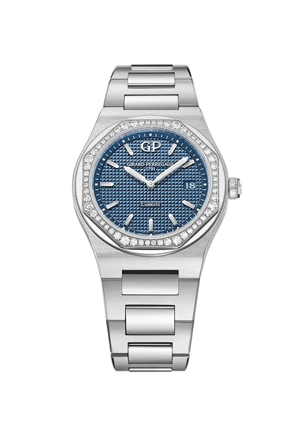 Hodinky Girard-Perregaux Laureato v sobě spojují moderní styl a švýcarskou preciznost. Kulaté pouzdro o průměru 34 mm je vyrobeno z ušlechtilé oceli a jeho eleganci zvýrazňuje ocelová luneta osazená diamanty, která dodává hodinkám luxusní lesk.