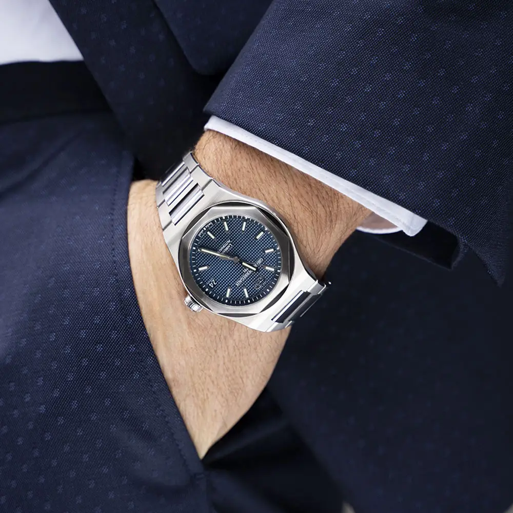 Pod odolným safírovým sklem se nachází atraktivní modrý analogový ciferník, jehož přehlednost podtrhuje praktická datumovka umístěná na tradiční pozici. Díky vodotěsnosti 10 ATM (100 metrů) jsou hodinky vhodné nejen pro běžné denní nošení, ale i pro plavání a aktivní životní styl.