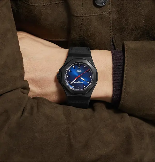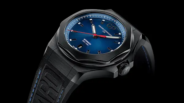 Hodinky Girard-Perregaux Laureato Absolute jsou moderním sportovním modelem, který dokonale kombinuje robustní design, prémiové materiály a švýcarskou hodinářskou preciznost. Jejich výrazné kulaté pouzdro o průměru 44 mm je vyrobeno z lehkého a odolného titanu, což zajišťuje vysoký komfort nošení i při větším rozměru. Titanová je také luneta, která podtrhuje sportovní charakter hodinek.