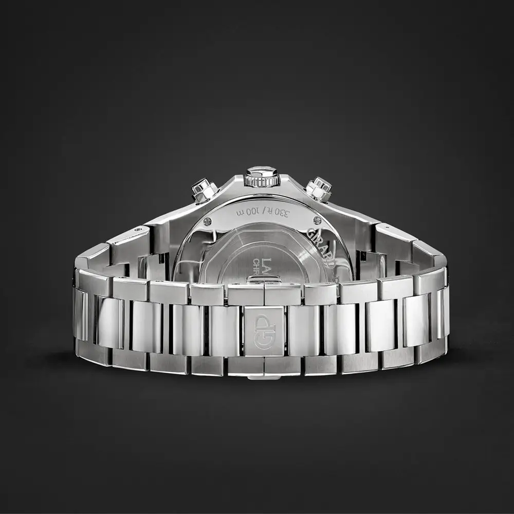 Hodinky Girard-Perregaux Laureato Chronograph jsou dokonalým ztělesněním sportovní elegance a precizního švýcarského řemesla. Jejich kulaté pouzdro o průměru 42 mm je vyrobeno z kvalitní ušlechtilé oceli a chrání jej odolné safírové sklo, které zaručuje výbornou čitelnost i ochranu proti poškození.