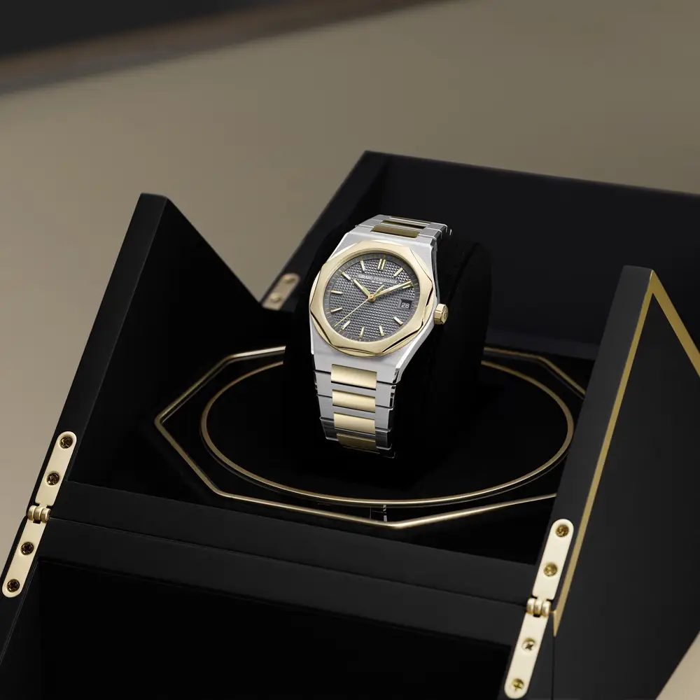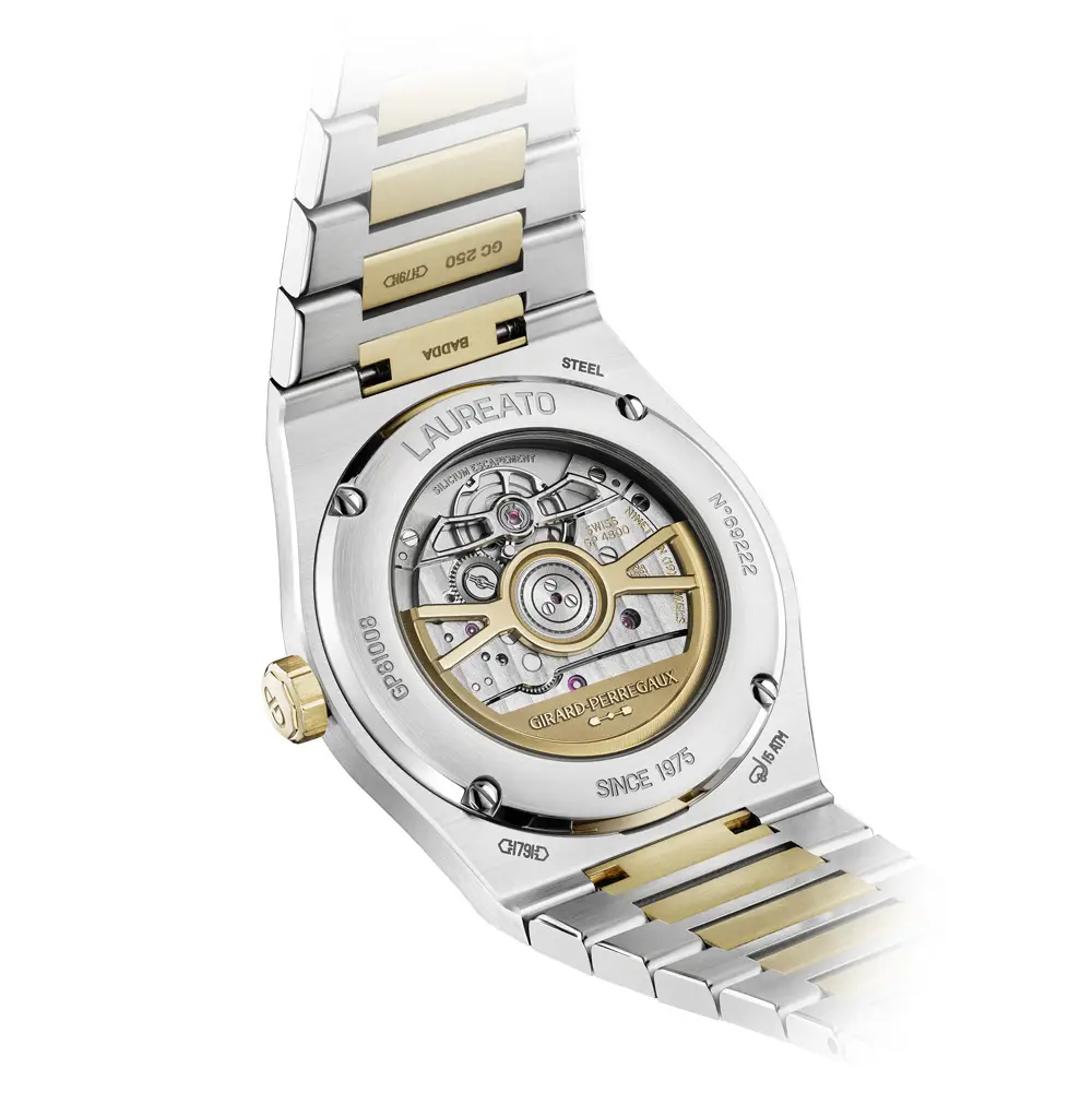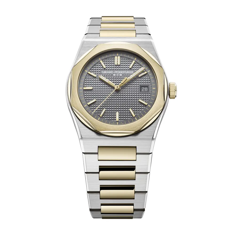Hodinky Girard-Perregaux Laureato 50th Anniversary vzdávají poctu padesáti letům ikonického designu, který spojuje technickou preciznost s nadčasovou estetikou. Jejich pouzdro o průměru 39 mm je vyrobeno z kombinace ušlechtilé oceli a 18 kt žlutého zlata, přičemž integrovaný dvoubarevný náramek a charakteristická osmihranná luneta vytvářejí výraznou siluetu typickou pro kolekci Laureato. Výsledkem je dokonalá rovnováha mezi sportovním duchem a elegantním stylem.