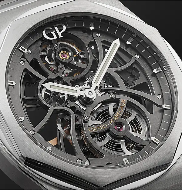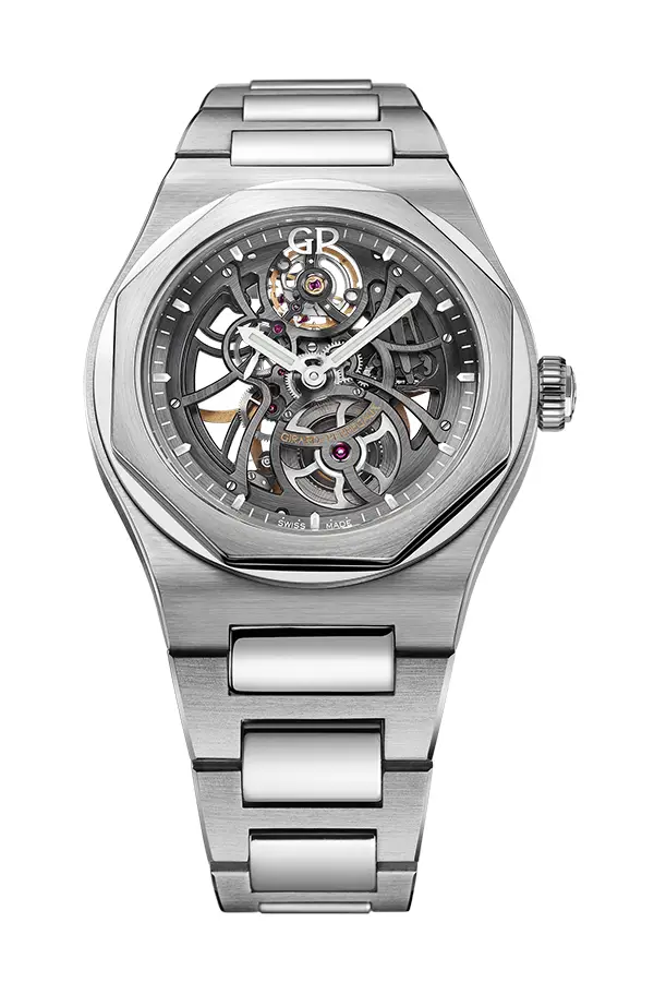 Hodinky Girard-Perregaux Laureato Skeleton jsou mistrovským dílem švýcarského hodinářství, které zaujme sofistikovaným designem a fascinující průhlednou architekturou. Kulaté pouzdro o průměru 42 mm je vyrobeno z kvalitní ušlechtilé oceli a chráněno safírovým sklem, které odhaluje detailní zpracování skeletonového ciferníku – ten umožňuje nahlédnout přímo do precizní mechaniky hodinek.