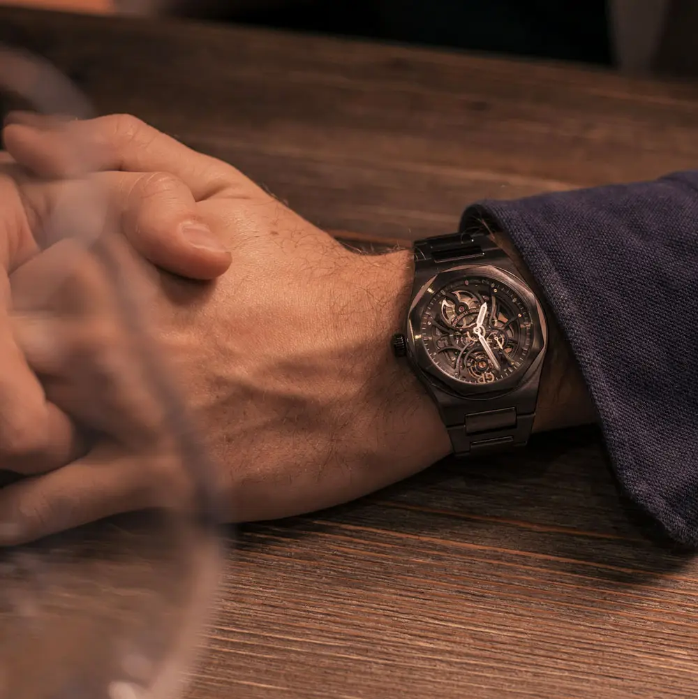 Hodinky Girard-Perregaux Laureato Skeleton Ceramic představují dokonalé spojení moderní estetiky, technické preciznosti a inovativních materiálů. Jejich 42mm pouzdro z černé keramiky vyniká saténovým i leštěným povrchem a doplňuje jej charakteristická osmihranná luneta, která podtrhuje sportovně-elegantní vzhled modelu.