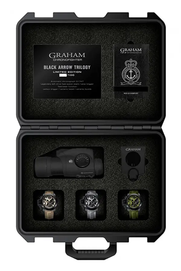 Hodinky Graham Chronofighter Oversize Black Arrow Set jsou výjimečným ztělesněním odvahy, technické dokonalosti a charakteristického stylu značky Graham. Tento model je součástí limitované edice pouhých 100 kusů, což z něj činí exkluzivní sběratelský klenot určený pro muže, kteří se nebojí vyčnívat.