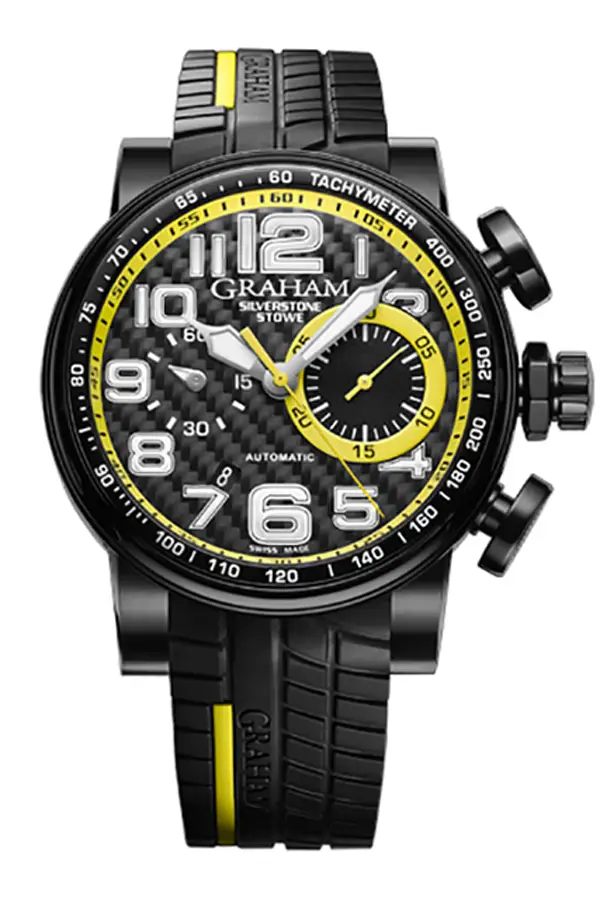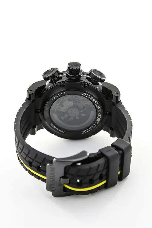 Hodinky Graham Silverstone Stowe Racing jsou dynamickým a výrazným modelem, který čerpá inspiraci ze světa motorsportu. Jejich robustní kulaté pouzdro o průměru 48 mm je vyrobeno z odolné oceli s černou PVD úpravou, což dodává hodinkám sportovní vzhled a zvýšenou odolnost proti opotřebení. Výraznou součástí designu je také keramická luneta, která podtrhuje jejich závodní charakter.