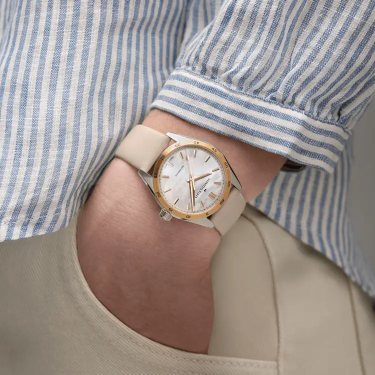 Jazzmaster je elegantní a sofistikovaná kolekce značky Hamilton, která spojuje klasický hodinářský design s moderním přístupem. Je inspirována světem jazzu – harmonickým spojením tradičních hodnot a kreativity, což se odráží v čistých liniích, propracovaných detailech a všestranném stylu hodinek.