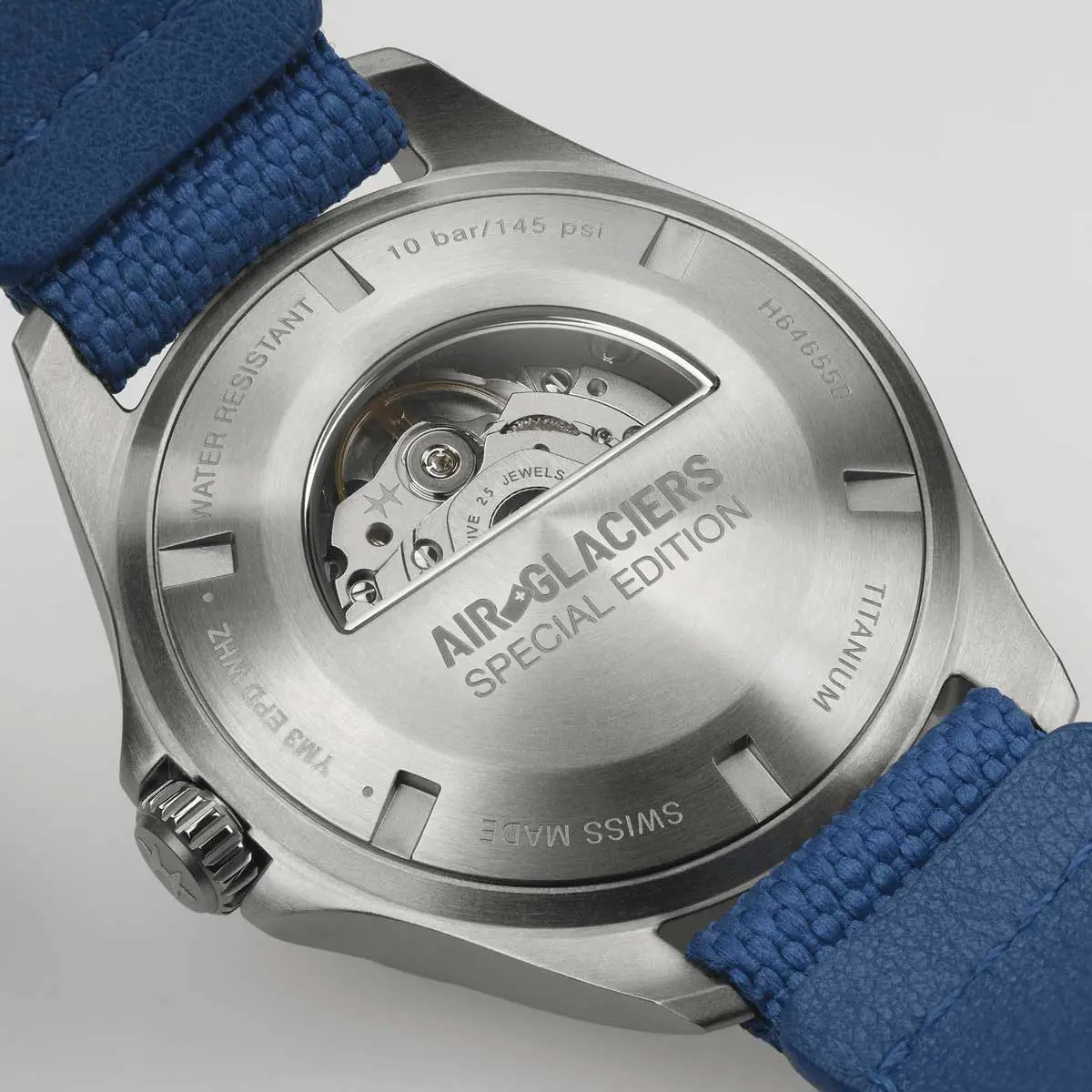 Model je vodotěsný do 10 ATM (100 m) a doplněný o praktický modrý textilní řemínek s klasickou trnovou sponou, který zajišťuje odolnost, pohodlí i sportovní vzhled. Hamilton Khaki Aviation Air-Glaciers Edition je perfektním společníkem pro každého, kdo vyžaduje spolehlivost, lehkost a čistý pilotní design inspirovaný reálnou leteckou praxí.
