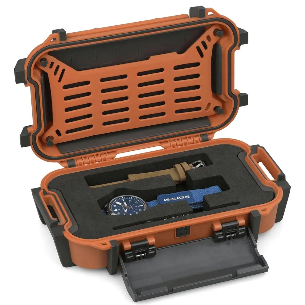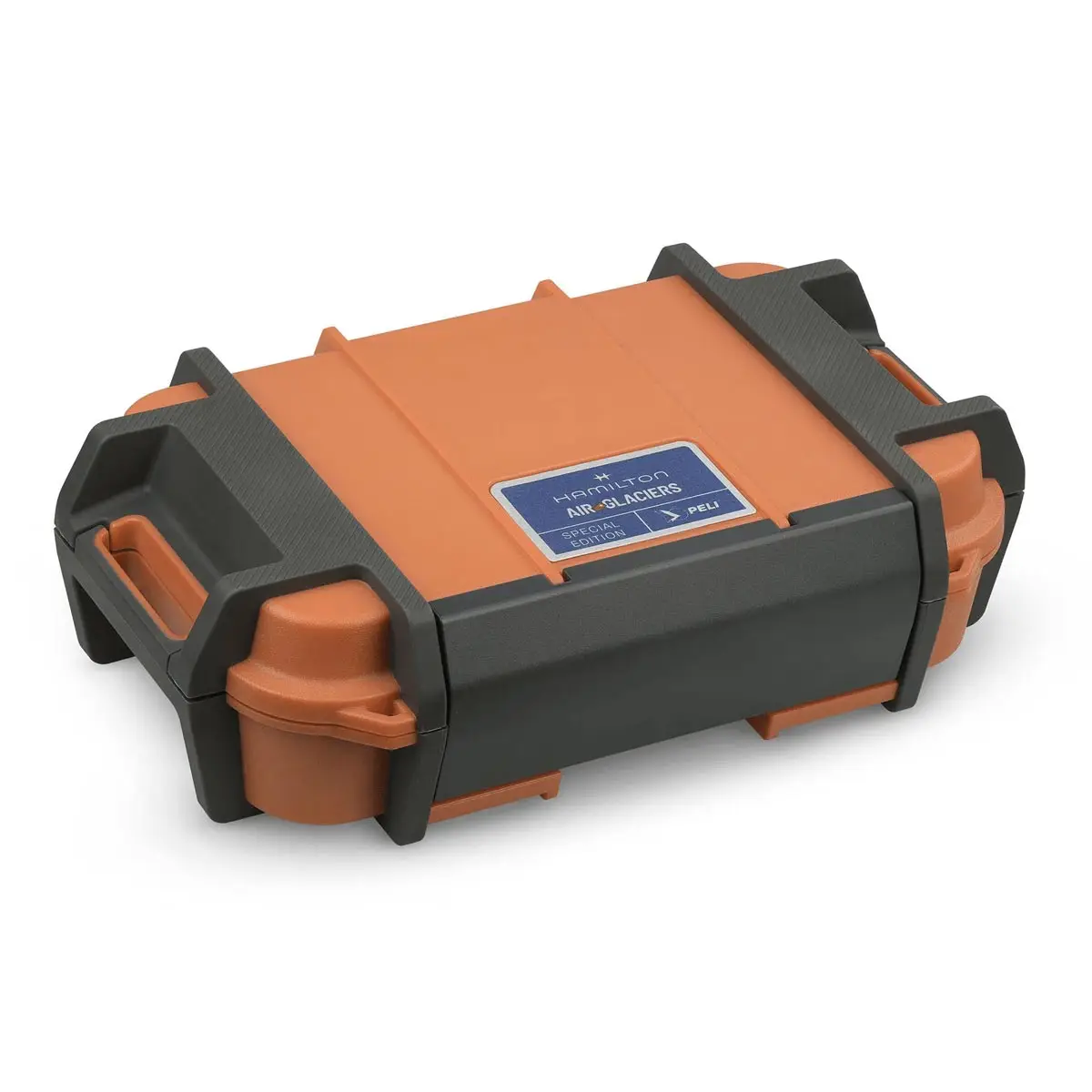 Hamilton Khaki Aviation Pilot Day Date Auto Air-Glaciers Edition H64655941 je letecký model vytvořený ve spolupráci se švýcarskou záchranářskou službou Air-Glaciers – hodinky, které kombinují funkčnost, lehkost a spolehlivost v náročných podmínkách. Kulaté pouzdro o průměru 42 mm je vyrobeno z titanu, díky čemuž je mimořádně lehké a odolné, ideální pro každodenní nošení i extrémní nasazení. Ciferník je chráněn safírovým sklíčkem, které zajišťuje maximální čitelnost a ochranu proti poškrábání.