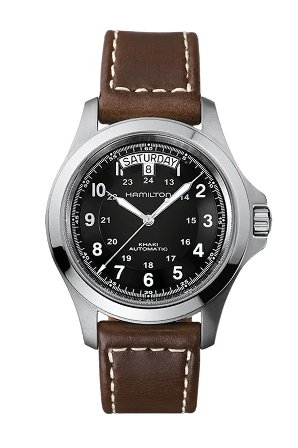 Typickým znakem Khaki Field hodinek je čistý číselník s výraznými arabskými číslicemi, 24hodinovou stupnicí a luminiscenčními ručkami. Nabízejí se v různých velikostech a provedeních – od mechanických modelů s ručním nátahem, přes automatické verze, až po quartzové varianty. Pouzdra jsou často z oceli s matnou úpravou, doplněná textilními, koženými nebo ocelovými náramky, odolnými proti každodennímu opotřebení.