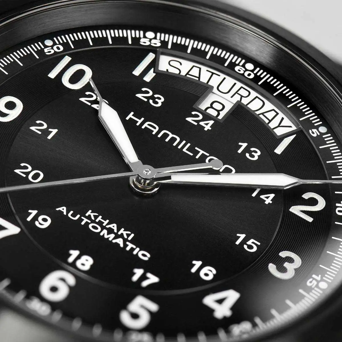 Typickým znakem Khaki Field hodinek je čistý číselník s výraznými arabskými číslicemi, 24hodinovou stupnicí a luminiscenčními ručkami. Nabízejí se v různých velikostech a provedeních – od mechanických modelů s ručním nátahem, přes automatické verze, až po quartzové varianty. Pouzdra jsou často z oceli s matnou úpravou, doplněná textilními, koženými nebo ocelovými náramky, odolnými proti každodennímu opotřebení.