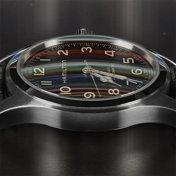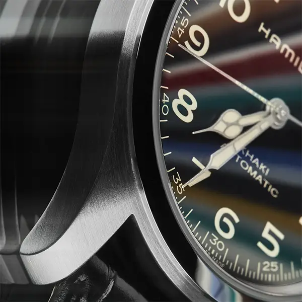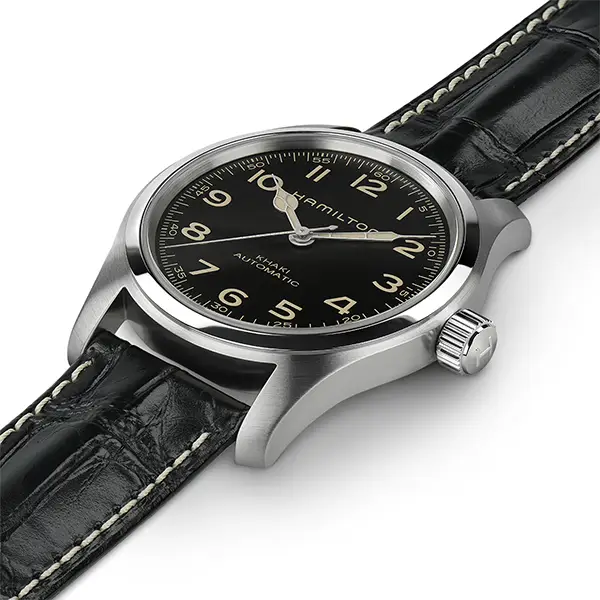 Typickým znakem Khaki Field hodinek je čistý číselník s výraznými arabskými číslicemi, 24hodinovou stupnicí a luminiscenčními ručkami. Nabízejí se v různých velikostech a provedeních – od mechanických modelů s ručním nátahem, přes automatické verze, až po quartzové varianty. Pouzdra jsou často z oceli s matnou úpravou, doplněná textilními, koženými nebo ocelovými náramky, odolnými proti každodennímu opotřebení.