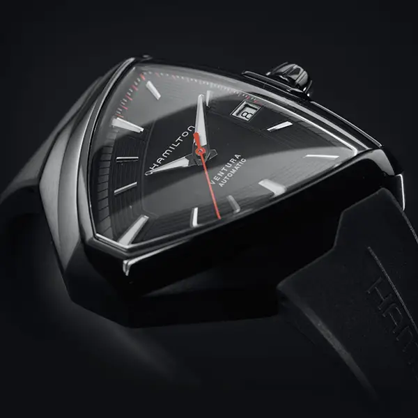 Ventura je nejslavnější a nejodvážnější kolekce značky Hamilton, proslavená jako první elektrické hodinky na světě. Představena byla v roce 1957 a okamžitě zaujala svým revolučním trojúhelníkovým pouzdrem, které nemá obdoby ve světě hodinářství. Design od Richarda Aribuse se stal symbolem futurismu a individuality.
