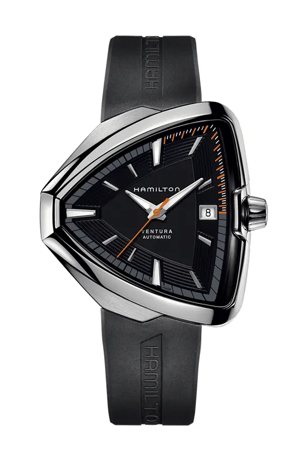 Ventura je nejslavnější a nejodvážnější kolekce značky Hamilton, proslavená jako první elektrické hodinky na světě. Představena byla v roce 1957 a okamžitě zaujala svým revolučním trojúhelníkovým pouzdrem, které nemá obdoby ve světě hodinářství. Design od Richarda Aribuse se stal symbolem futurismu a individuality.