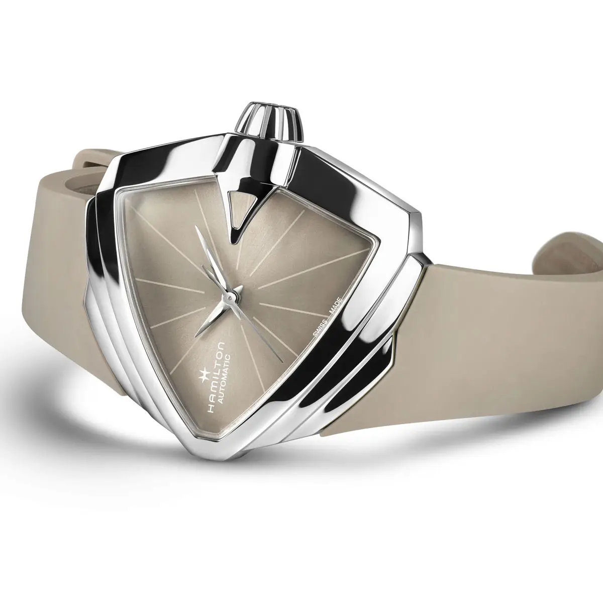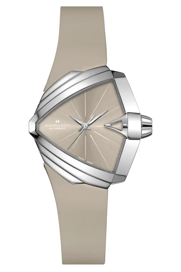 Ventura je nejslavnější a nejodvážnější kolekce značky Hamilton, proslavená jako první elektrické hodinky na světě. Představena byla v roce 1957 a okamžitě zaujala svým revolučním trojúhelníkovým pouzdrem, které nemá obdoby ve světě hodinářství. Design od Richarda Aribuse se stal symbolem futurismu a individuality.