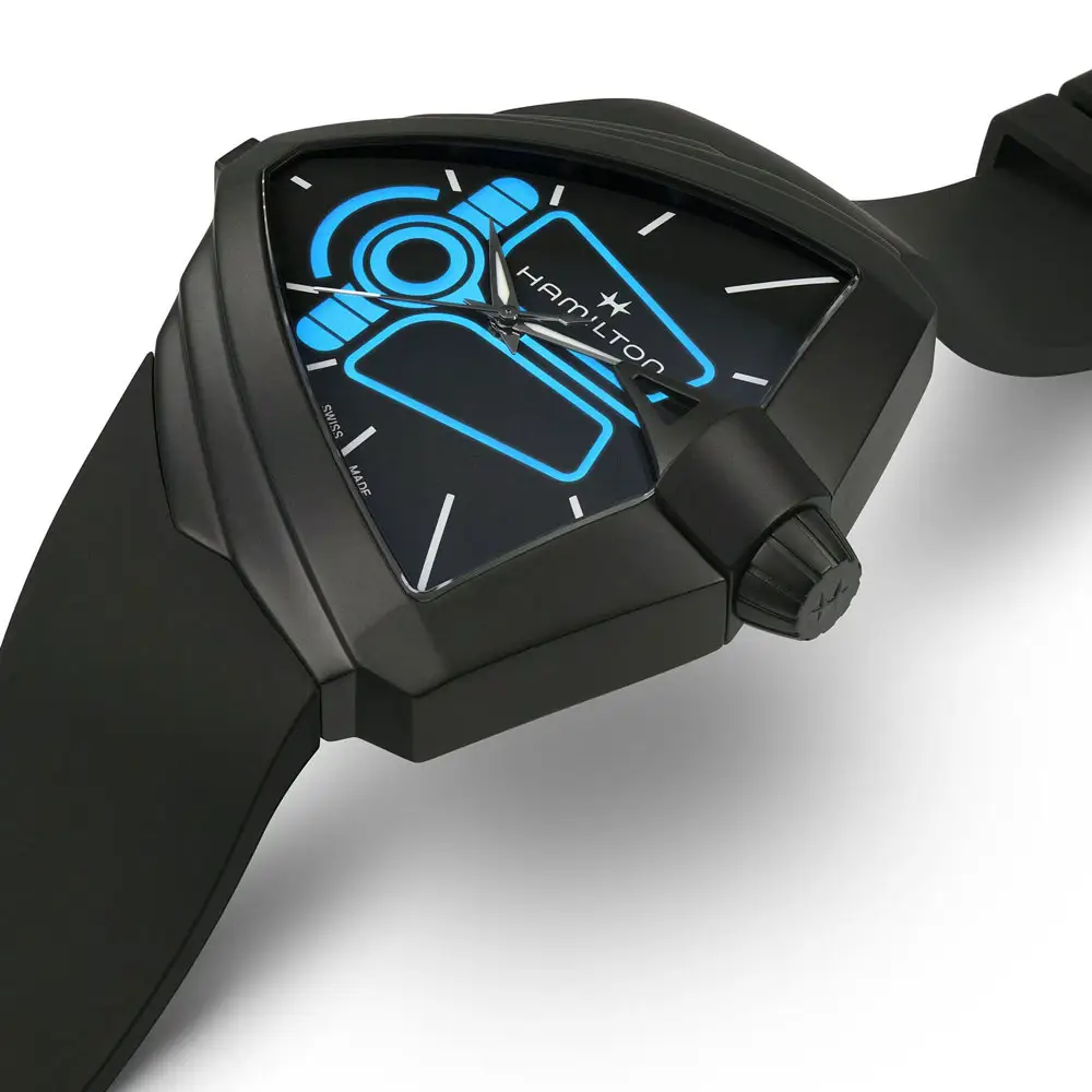 Ventura je nejslavnější a nejodvážnější kolekce značky Hamilton, proslavená jako první elektrické hodinky na světě. Představena byla v roce 1957 a okamžitě zaujala svým revolučním trojúhelníkovým pouzdrem, které nemá obdoby ve světě hodinářství. Design od Richarda Aribuse se stal symbolem futurismu a individuality.