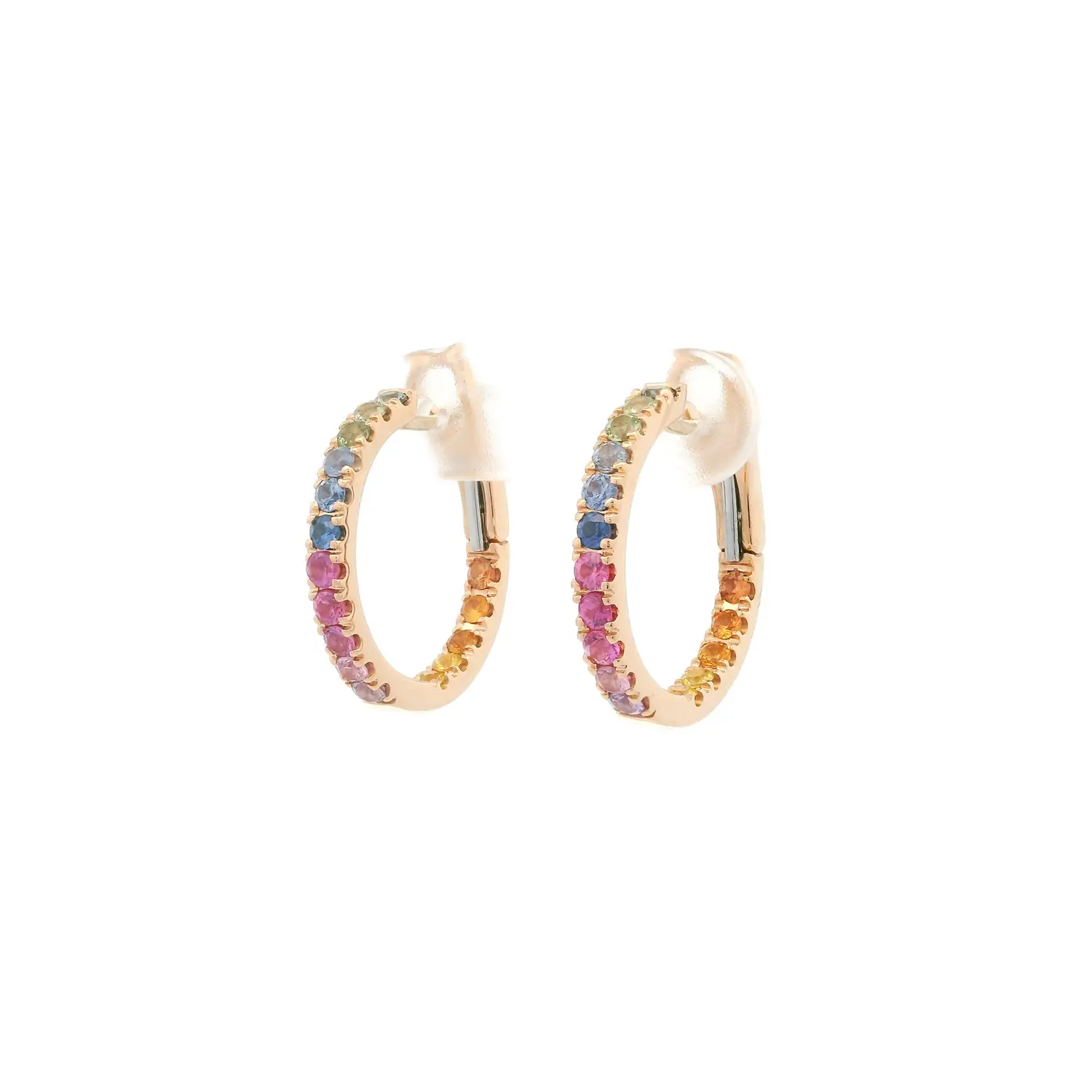 Kruhové náušnice z 18k růžového zlata s barevnými safíry