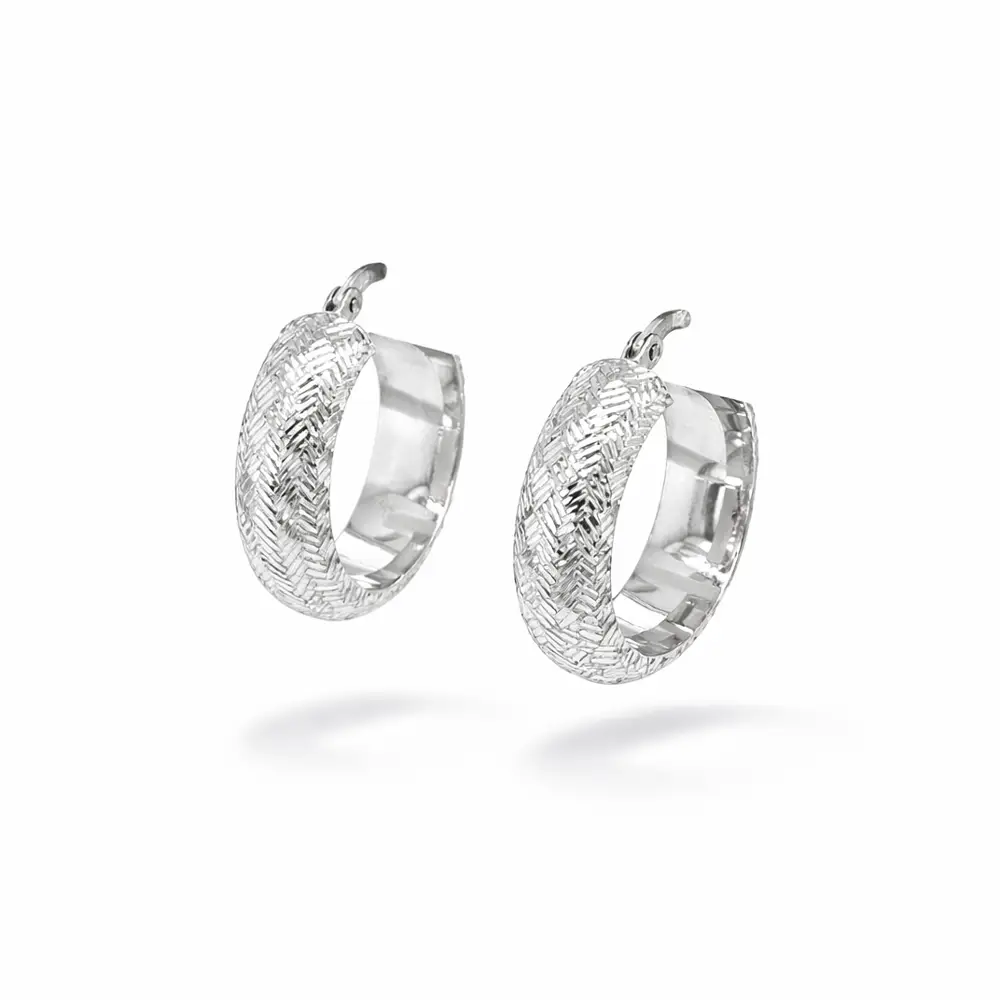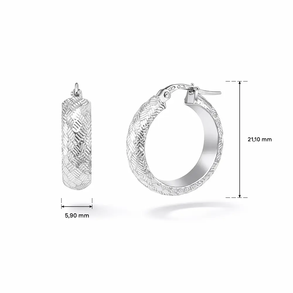 Kruhové náušnice z bílého zlata s rytým povrchem