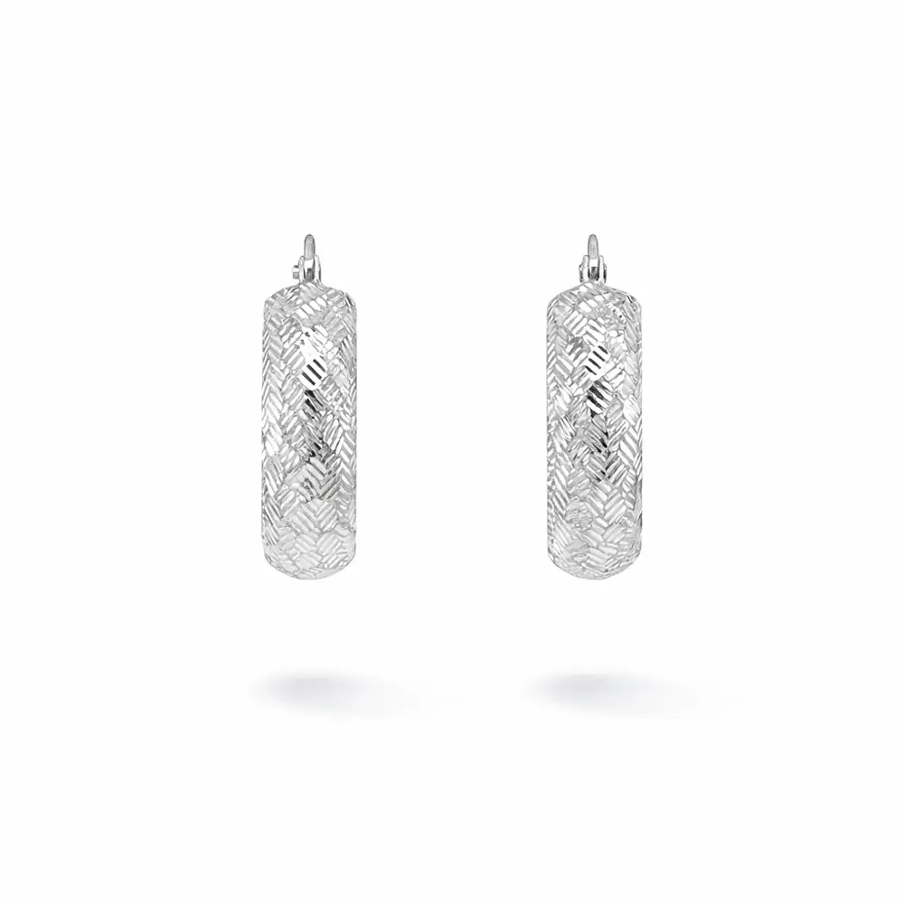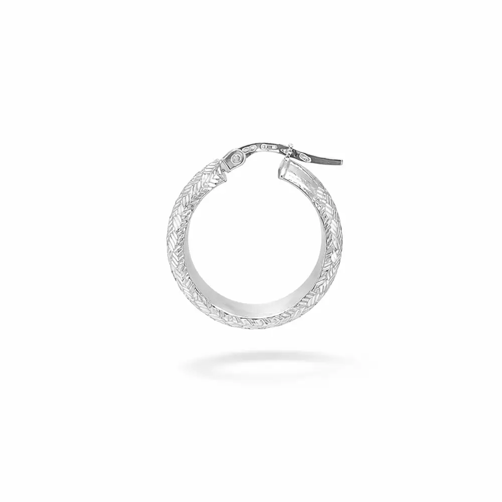 Tyto kruhové náušnice z bílého zlata vynikají výrazným rytým povrchem, který vytváří zajímavou hru světla a dodává šperku elegantní, lehce strukturovaný vzhled. Precizně zpracovaný dekor podtrhuje luxusní charakter náušnic a činí z nich nadčasový doplněk s jemným, ale nepřehlédnutelným efektem.