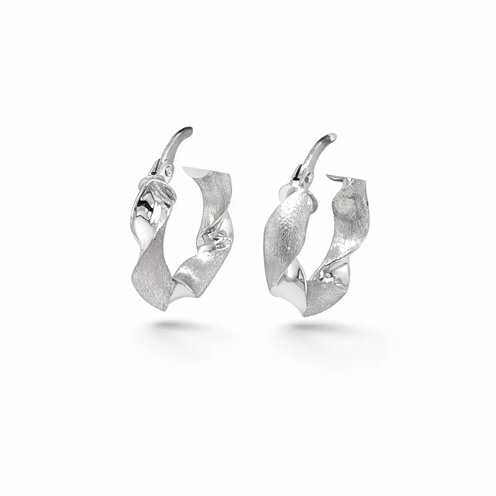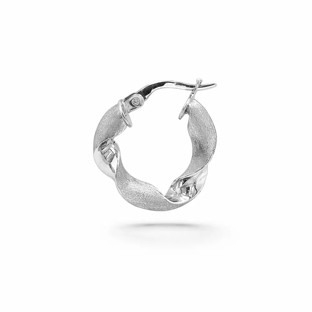 Tyto kruhové náušnice z bílého zlata zaujmou elegantním točeným designem, který kombinuje hladké a jemně strukturované plochy. Dynamicky tvarovaný motiv vytváří působivou hru světla a dodává šperku moderní, přesto nadčasový výraz. Precizní zpracování podtrhuje luxusní charakter náušnic a jejich originální estetiku.