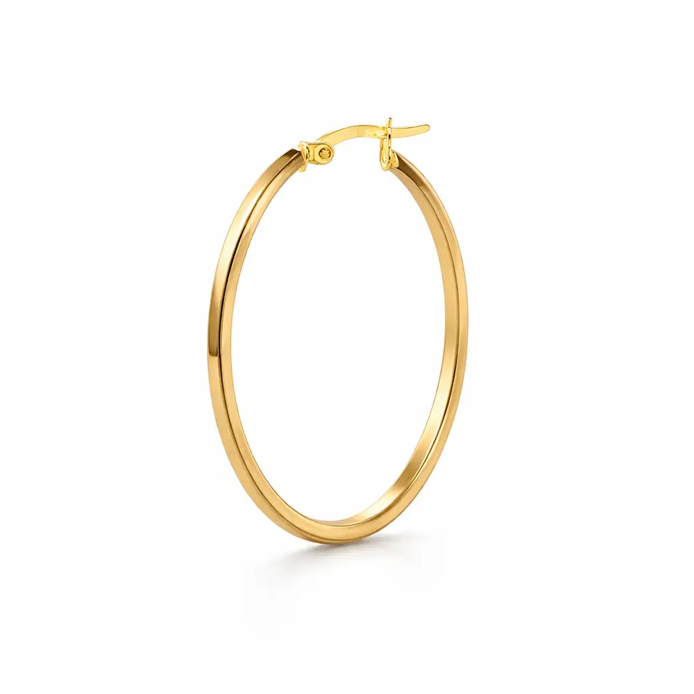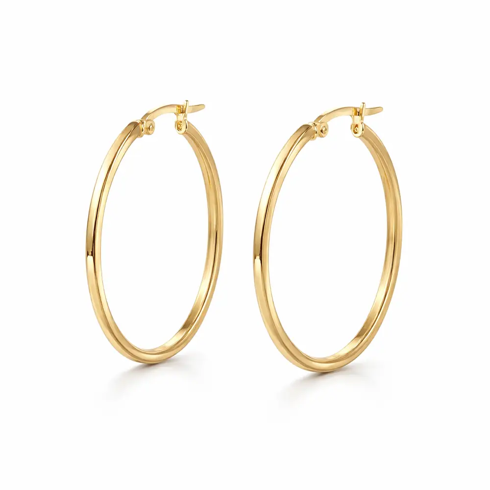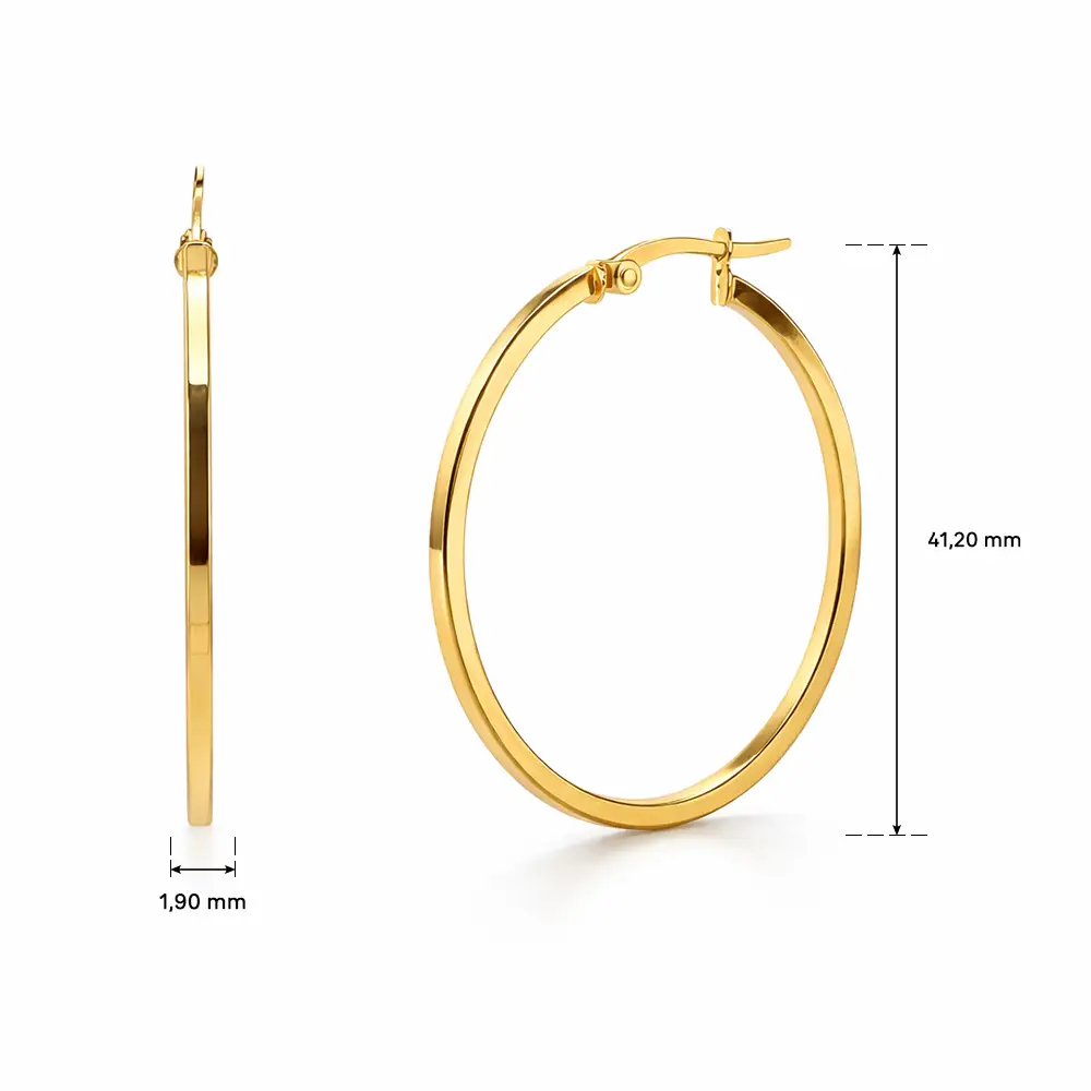 Klasický kruhový tvar v kombinaci s bezpečným zapínáním zajišťuje pohodlné a spolehlivé nošení po celý den. S průměrem přibližně 41,20 mm a štíhlým profilem o šířce cca 1,90 mm jsou náušnice lehké, vzdušné a ideální jak pro každodenní nošení, tak i jako decentní doplněk k formálnějším outfitům.