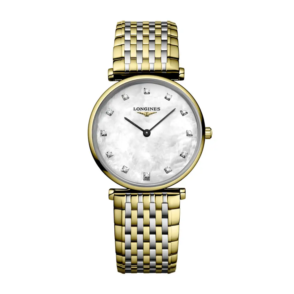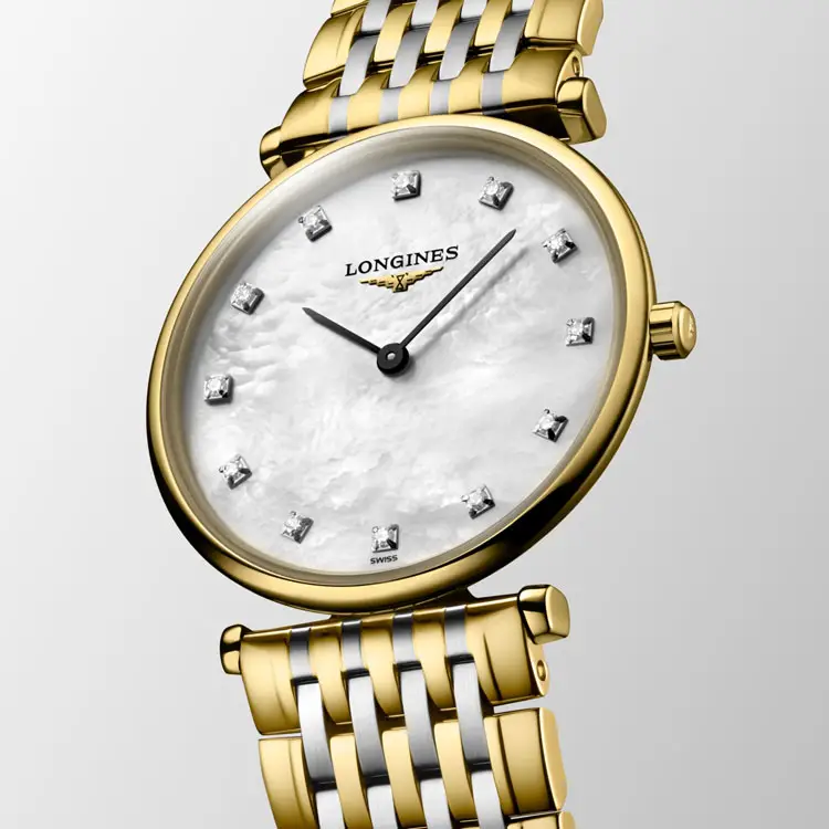 Uvnitř se ukrývá precizní quartzový kalibr L420, jenž garantuje švýcarskou přesnost a bezstarostný chod. Model je doplněn náramkem z oceli se žlutým PVD povrchem a trojitým bezpečnostním zapínáním, které spojuje komfort s elegancí. Tento model je dokonalým ztělesněním hodnot Longines – tradice, ženskosti a nadčasové krásy.