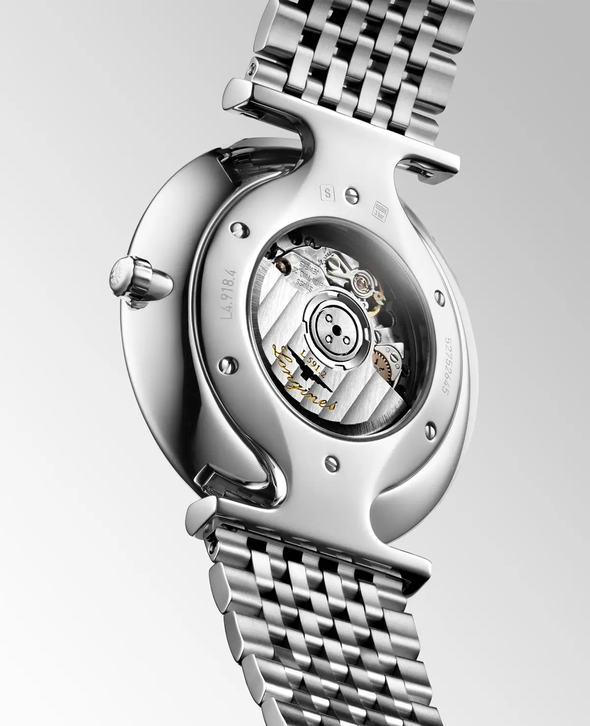 Uvnitř bije automatický kalibr L591 s rezervou chodu až 45 hodin, který potvrzuje švýcarskou preciznost a spolehlivost. Model doplňuje ocelový náramek s integrovaným zapínáním, jenž zajišťuje pohodlí a jistotu při každém nošení. Tyto hodinky jsou symbolem tradice, elegance a technického mistrovství značky Longines.