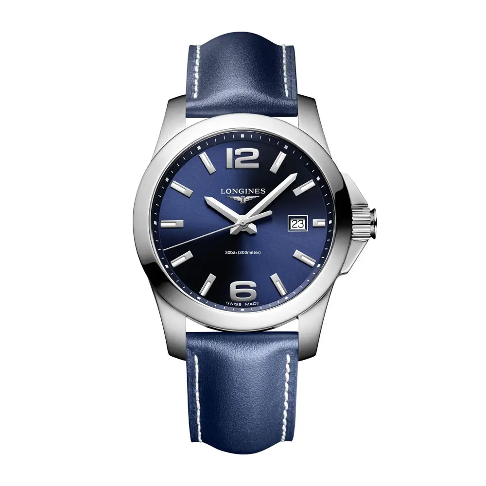 Model doplňuje stylový modrý kožený pásek s překlápěcí sponou, který poskytuje pohodlí, bezpečné nošení a sofistikovaný vzhled. Longines Conquest L3.759.4.96.0 je ideální volbou pro muže, kteří hledají spojení sportovní funkčnosti, elegantního designu a švýcarské spolehlivosti.