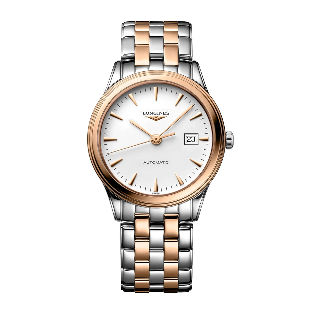 Longines Flagship Classic L4.974.3.92.7 představuje nadčasovou kombinaci elegance a precizní švýcarské hodinářské tradice. Jeho 38,5mm pouzdro z nerezové oceli s PVD růžovým zlacením podtrhuje klasický vzhled a působí decentně i luxusně zároveň. Bílý ciferník s jemnými detaily a datumovým okénkem nabízí perfektní čitelnost a harmonii.