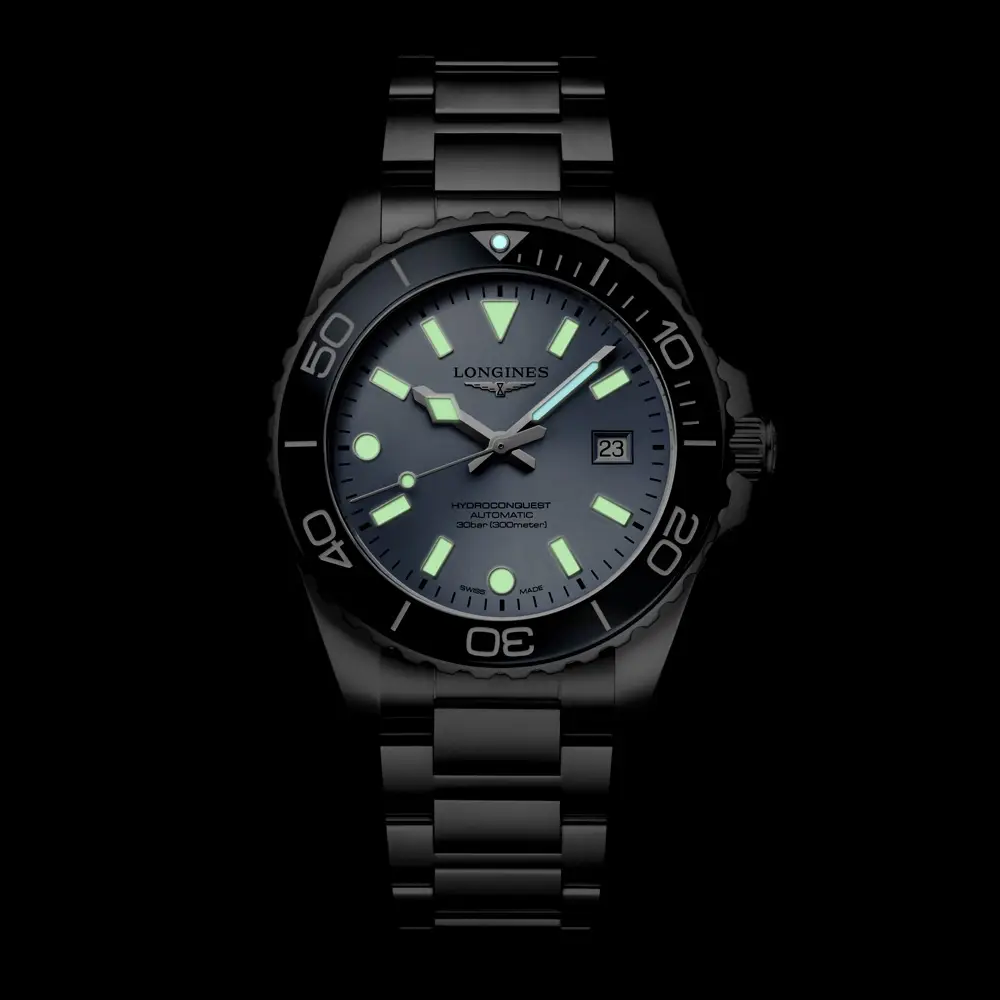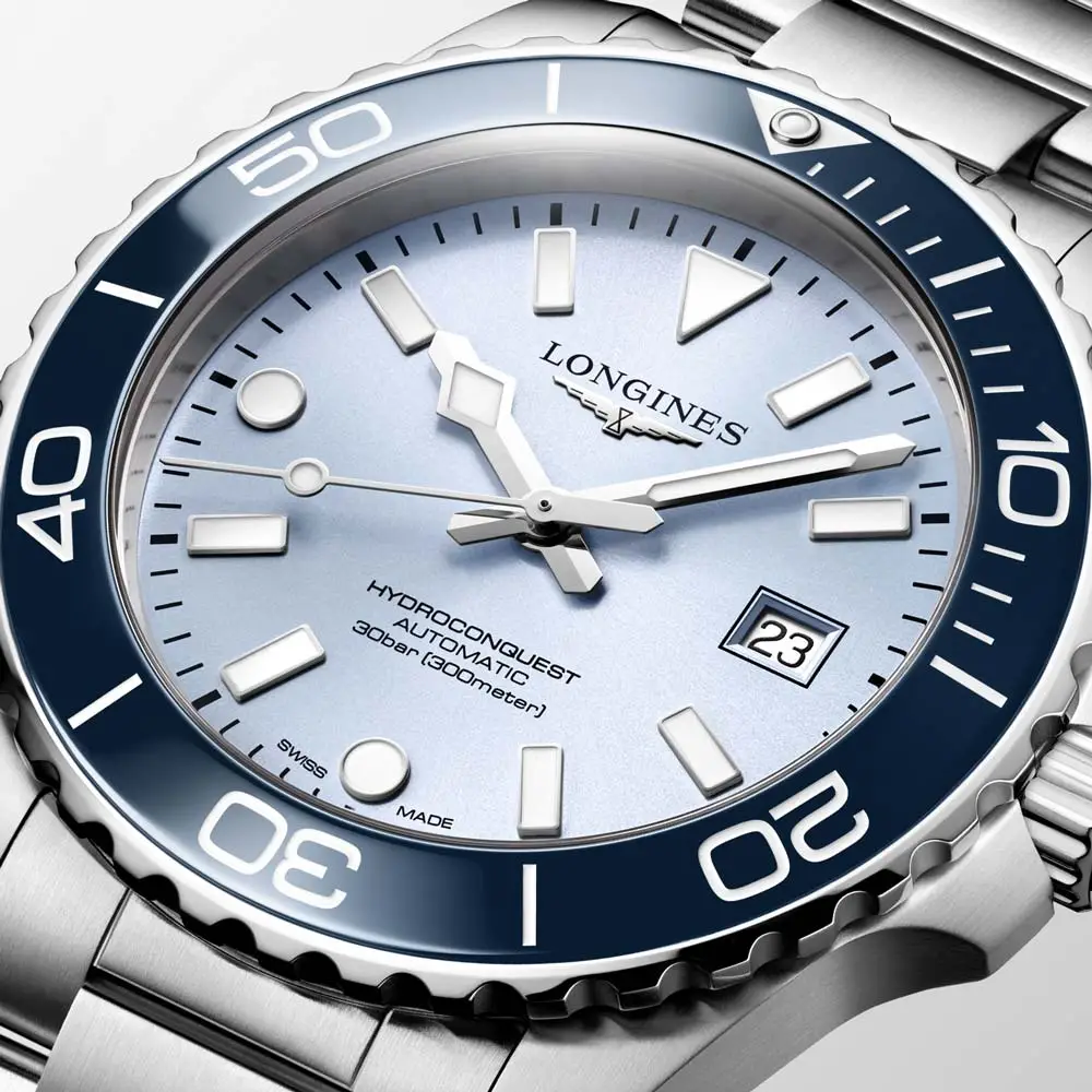 Modely HydroConquest se vyznačují robustním pouzdrem z ušlechtilé oceli, keramiky či titanu, vodotěsností až do 300 metrů a jednosměrně otočnou lunetou pro bezpečné měření času pod vodou. Ciferníky v odstínech modré, černé, šedé či zelené doplňují luminiscenční ručky a indexy, které zajišťují perfektní čitelnost i v hlubinách oceánu.