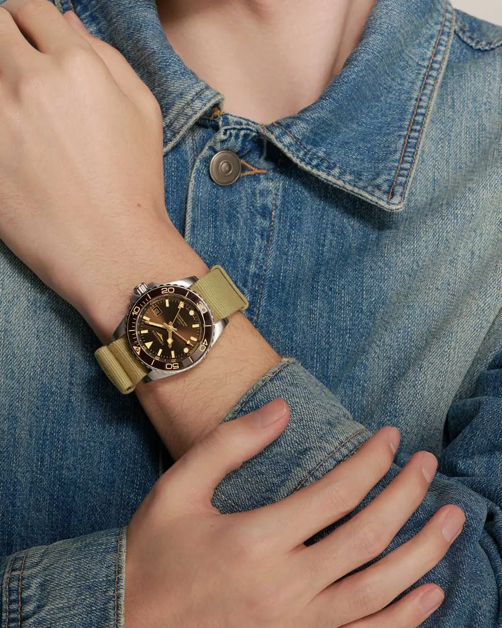 Elegantní béžový textilní řemínek s trnovou sponou dodává hodinkám dobrodružný, ale zároveň sofistikovaný vzhled. Longines HydroConquest GMT je ideálním společníkem pro všechny, kteří potřebují sledovat čas na dvou místech zároveň a přitom nechtějí dělat kompromisy mezi stylem a funkčností.