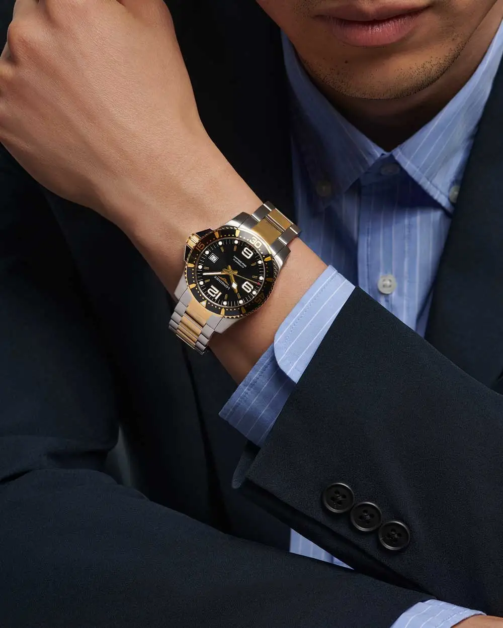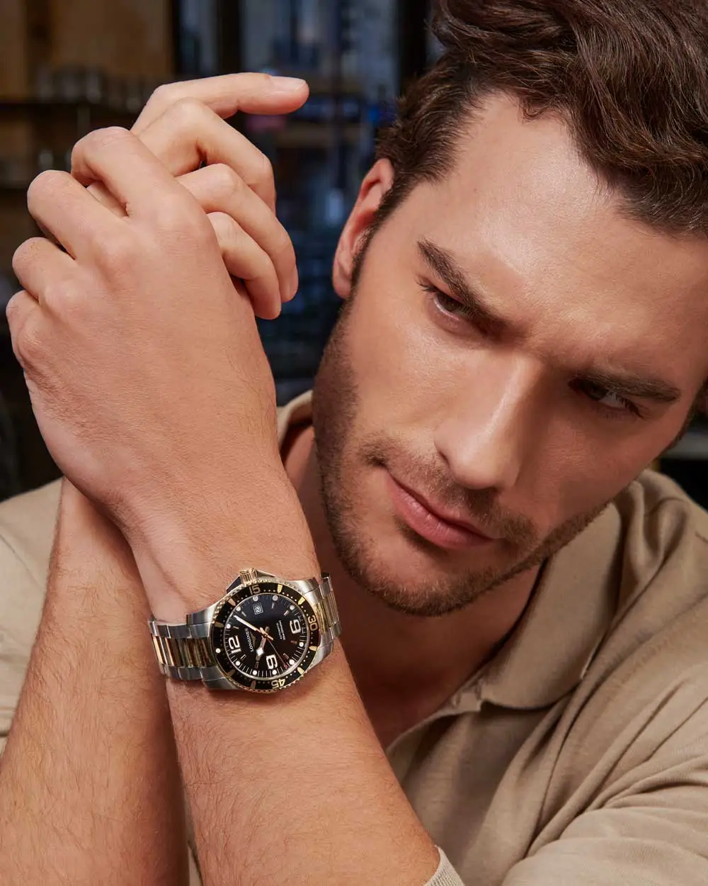 Uvnitř pracuje automatický kalibr L888 s rezervou chodu 72 hodin a frekvencí 25 200 v/h, který potvrzuje spolehlivost a preciznost Longines. Model doplňuje ocelový náramek se žlutou PVD úpravou a dvojitou bezpečnostní sponou, poskytující pohodlí i jistotu. HydroConquest L3.742.3.56.7 zosobňuje výkon, odolnost a tradici švýcarského hodinářství.