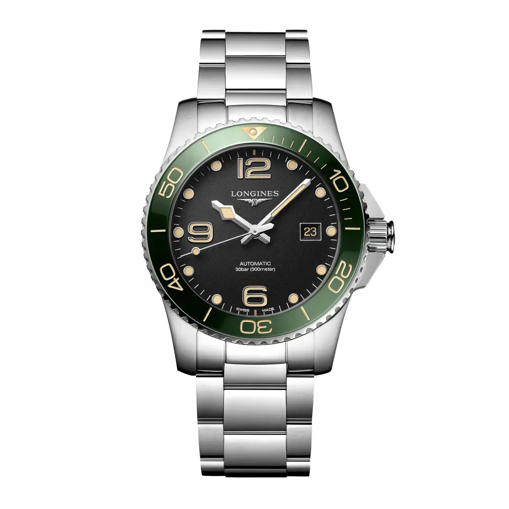 Modely HydroConquest se vyznačují robustním pouzdrem z ušlechtilé oceli, keramiky či titanu, vodotěsností až do 300 metrů a jednosměrně otočnou lunetou pro bezpečné měření času pod vodou. Ciferníky v odstínech modré, černé, šedé či zelené doplňují luminiscenční ručky a indexy, které zajišťují perfektní čitelnost i v hlubinách oceánu.