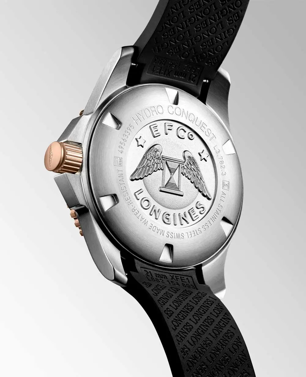 Modely HydroConquest se vyznačují robustním pouzdrem z ušlechtilé oceli, keramiky či titanu, vodotěsností až do 300 metrů a jednosměrně otočnou lunetou pro bezpečné měření času pod vodou. Ciferníky v odstínech modré, černé, šedé či zelené doplňují luminiscenční ručky a indexy, které zajišťují perfektní čitelnost i v hlubinách oceánu.