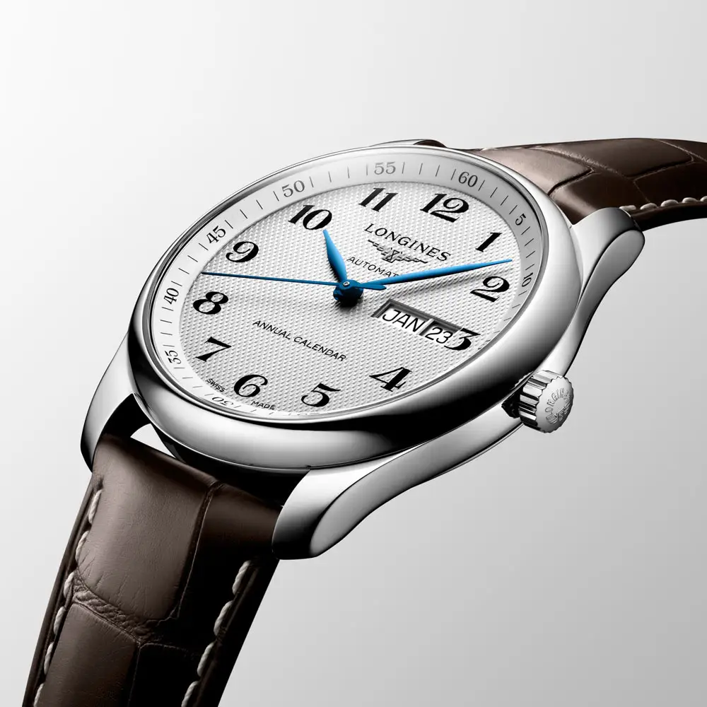 Longines Master Collection L2.910.4.78.3 ztělesňují sofistikovanou eleganci, která je pro tuto prestižní řadu značky Longines typická. Kulaté pouzdro z ušlechtilé oceli o průměru 40 mm je doplněno klasickým stříbrným ciferníkem s jemným zrnitým vzorem a modřenými ručkami, které dodávají hodinkám výjimečný charakter. Nadčasový vzhled završuje hnědý řemínek z pravé aligátoří kůže s překlápěcí sponou pro pohodlné a bezpečné nošení.