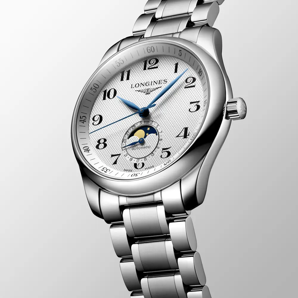Model Longines Master Collection L2.909.4.78.6 vyjadřuje spojení tradičního hodinářství a elegantní estetiky pro náročné uživatele. Ocelové pouzdro s průměrem 40 mm poskytuje vyváženou a prestižní přítomnost na zápěstí, zatímco stříbrný číselník s jemnou texturou „barleycorn“ a ukazatelem měsíční fáze dodávají modelu nadčasový a sofistikovaný vzhled. Safírové sklíčko odolné proti poškrábání a průhledné dýnko podtrhují vysokou úroveň zpracování.