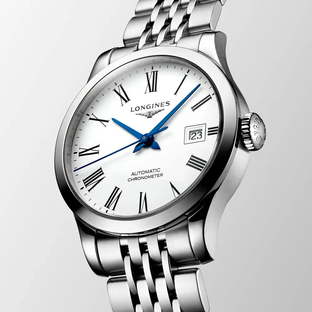 Kolekce Longines Record je poctou tradičnímu hodinářskému umění značky a jejímu neustálému úsilí o dokonalost. Každý model této řady je vybaven mechanickým strojkem s automatickým nátahem, který je certifikován švýcarským institutem COSC (Contrôle Officiel Suisse des Chronomètres) – záruka mimořádné přesnosti a kvality.