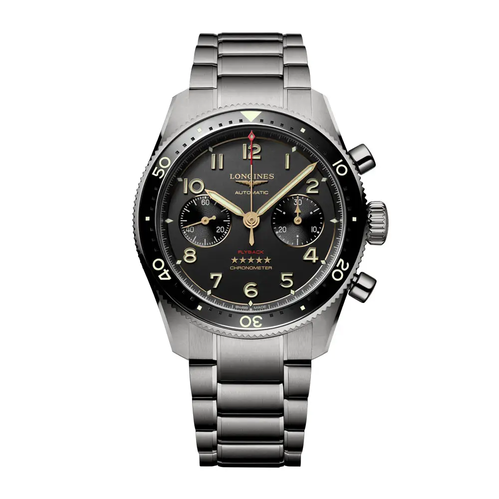 Longines Spirit Flyback Titanium L3.821.1.53.6 představuje špičkový chronograf kombinující výsledky nejmodernějších technologií s elegantním a odolným provedením. Pouzdro ve velikosti 42 mm je z lehkého titanu a doplněno keramickou lunetou, což zajišťuje optimální odolnost a komfort při nošení.