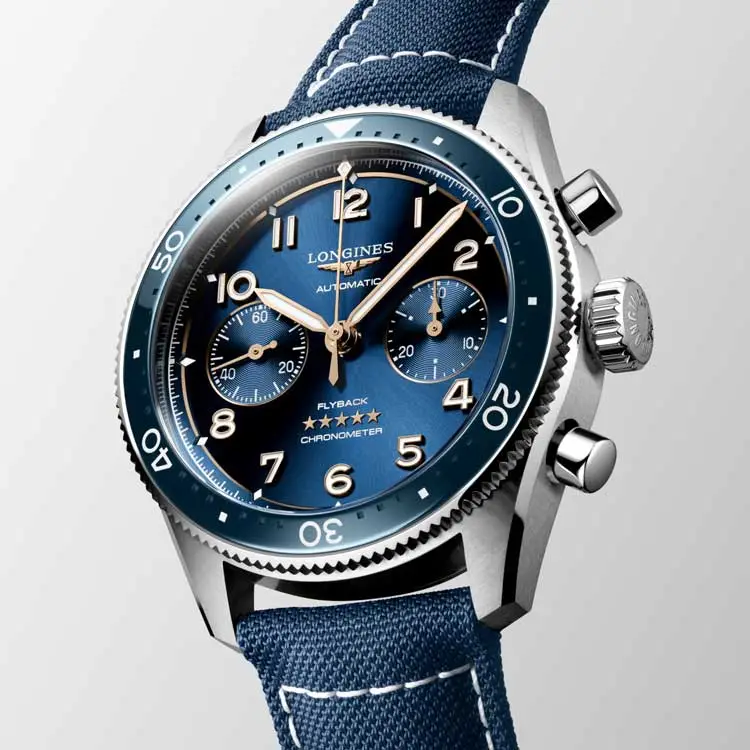 Model je vodotěsný do 10 ATM (100 m) a doplněn stylovým modrým nylonovým řemínkem s překlápěcí sponou, který nabízí pohodlí, odolnost a sportovní vzhled. Longines Spirit Flyback L3.821.4.93.2 je ideální volbou pro muže, kteří oceňují spojení historie, moderní technologie a švýcarské hodinářské preciznosti.
