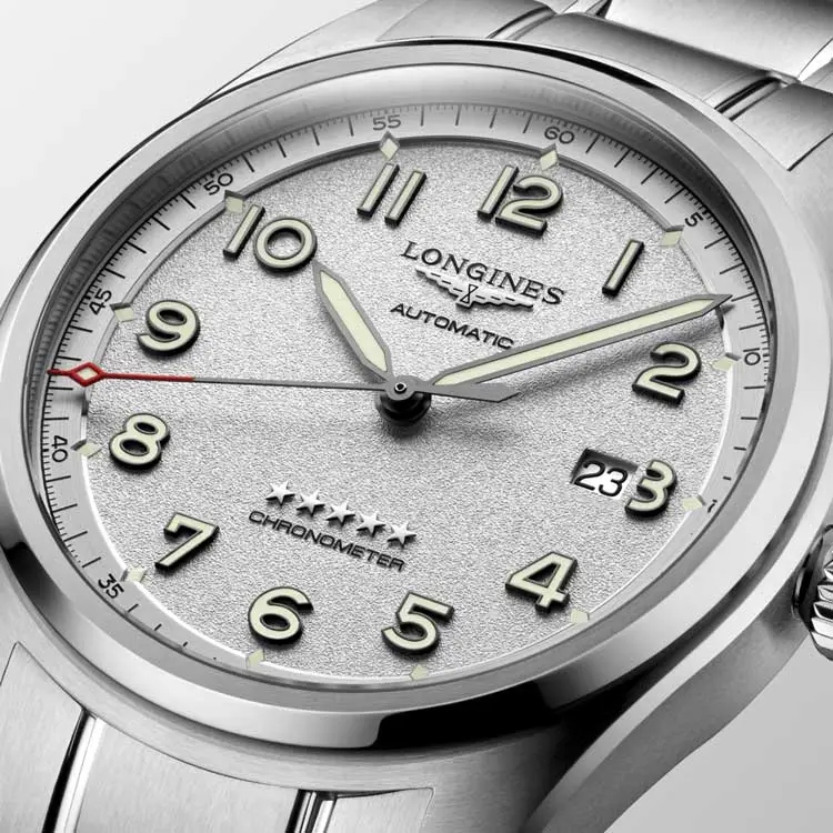 Každý detail kolekce Spirit vyzařuje sílu, přesnost a funkční estetiku: výrazné arabské číslice s luminiscenční úpravou, šroubovací korunka, safírové sklíčko s antireflexní vrstvou a robustní pouzdro z nerezové oceli nebo titanu. V srdci hodinek tiká chronometricky certifikovaný automatický strojek (COSC), zaručující špičkovou přesnost a výkon.