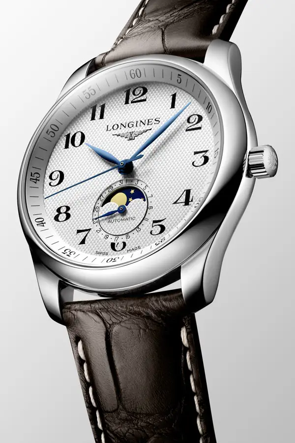 Longines Master Collection L2.909.4.78.3 je elegantní automatické hodinky s komplikací fáze měsíce a jemným designem. Pouzdro z nerezové oceli o průměru 40 mm je doplněno safírovým sklíčkem s antireflexní úpravou a ocelovým tahem s trojitou bezpečnostní sponou.