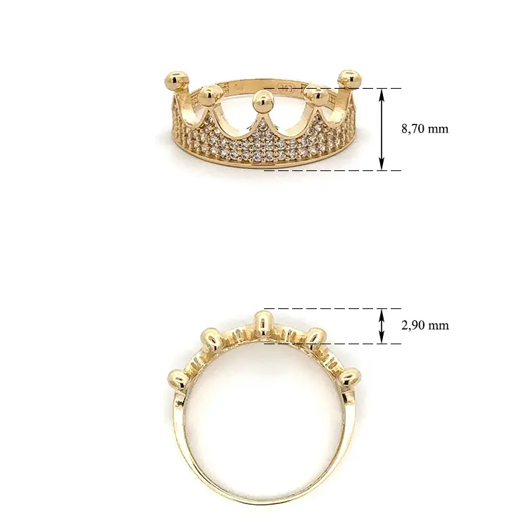 Luxusní Prsten ve Tvaru Královské Koruny ze Žlutého Zlata