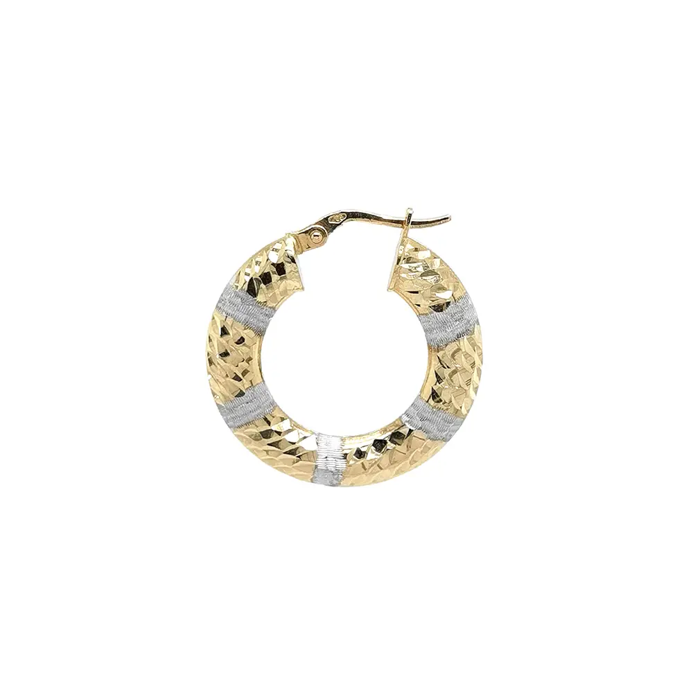 Luxusní zlaté kruhové náušnice v bicolor provedení zaujmou čistým a nadčasovým designem, který staví na harmonickém spojení žlutého a bílého zlata. Elegantní kontrast dvou ušlechtilých odstínů dodává šperku sofistikovaný vzhled, který se snadno kombinuje s dalšími zlatými doplňky a podtrhuje osobitý styl.