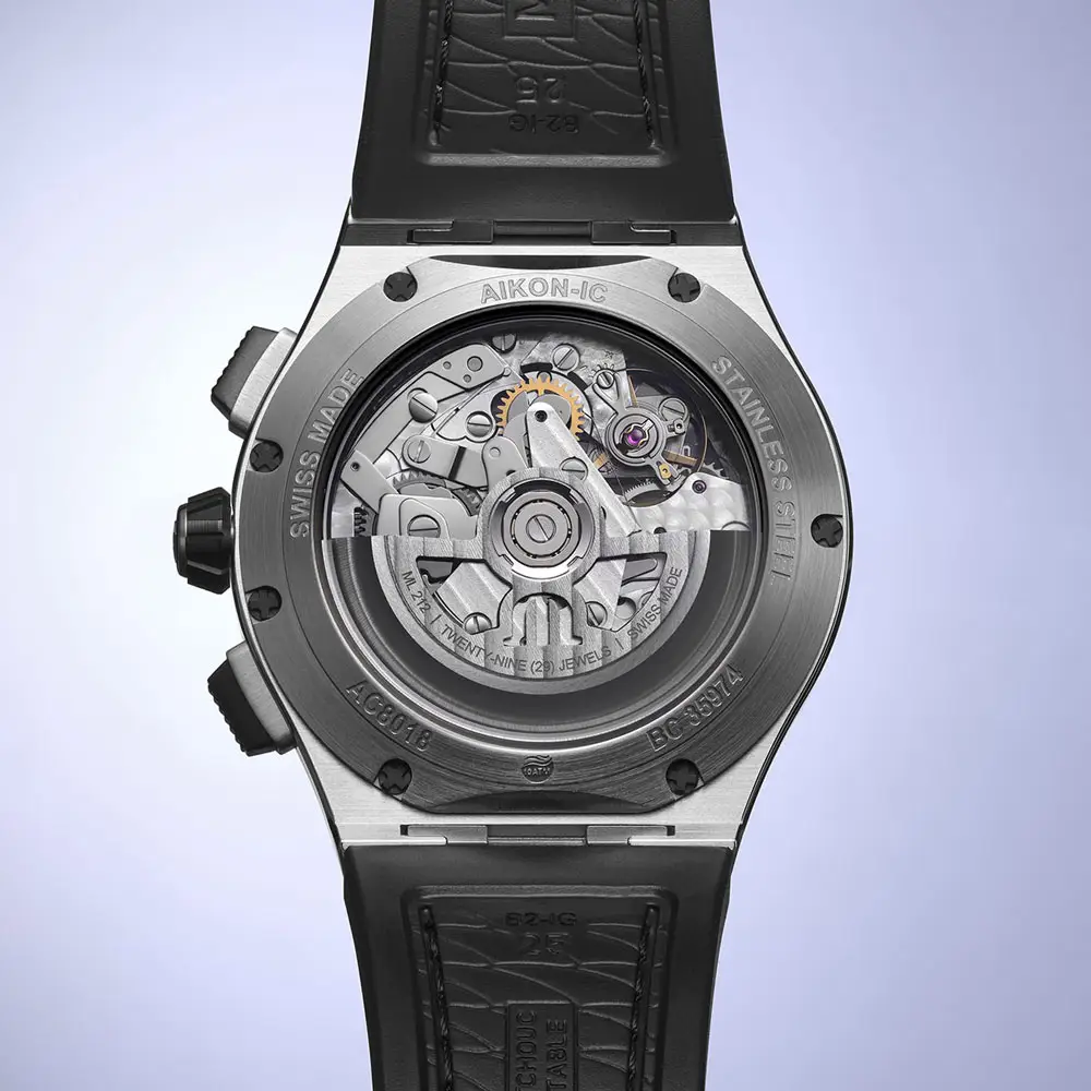 Hodinky Maurice Lacroix AikonIc Automatic Chronograph Skeleton (ref. AC8018-SSL20-030-2) představují moderní sportovní chronograf s výrazným skeleton designem a důrazem na technickou preciznost. Pouzdro o průměru 43 mm z nerezové oceli 316L je doplněno o keramickou lunetu s vysokou odolností proti poškrábání. Typická luneta se šesti rameny podtrhuje ikonický styl kolekce AikonIc. Hodinky disponují safírovým sklíčkem s oboustrannou antireflexní úpravou, šroubovací korunkou a vodotěsností 100 m (10 ATM).