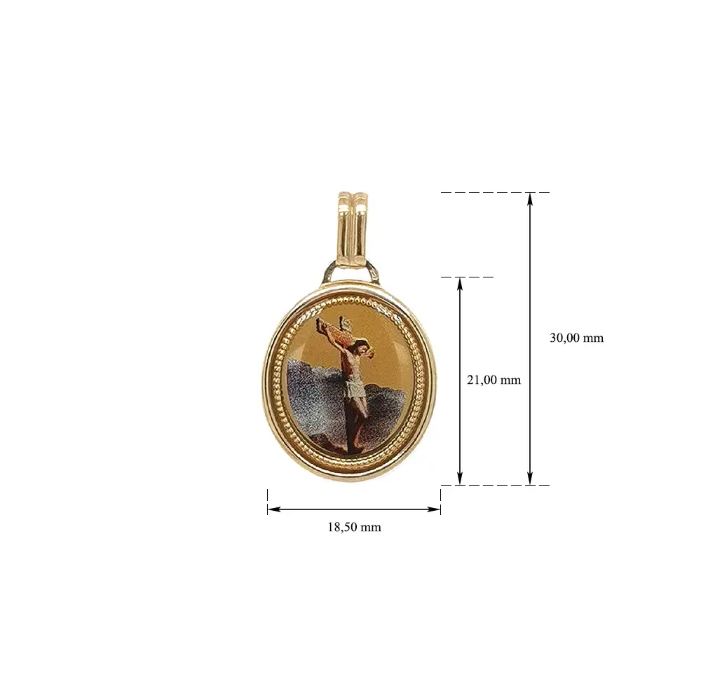 Medailon z Leštěného Žlutého Zlata s Vyobrazením Krista na Kříži