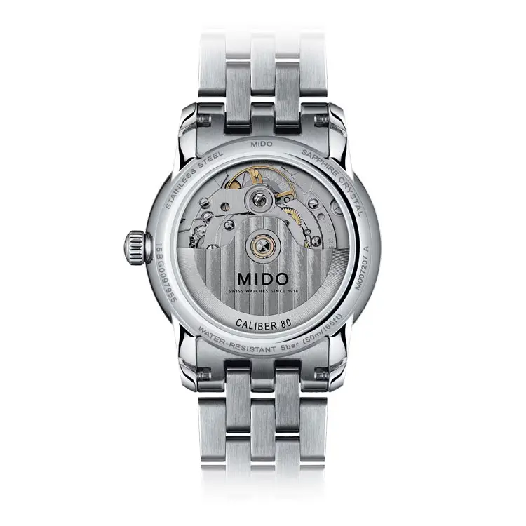 Hodinky Mido Baroncelli Diamonds jsou dokonalým spojením elegance, jemných detailů a švýcarské hodinářské tradice. Jejich klasické kulaté pouzdro o průměru 33 mm je vyrobeno z kvalitní ušlechtilé oceli a chráněno odolným safírovým sklem, které zajišťuje perfektní ochranu a čitelnost.