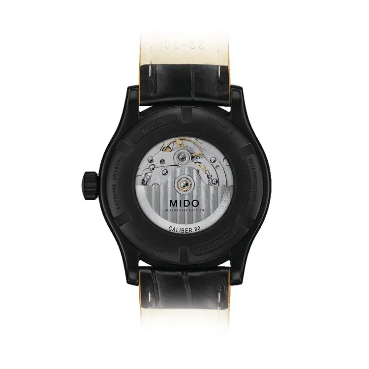 Hodinky Mido Multifort Special Edition jsou výrazným modelem, který kombinuje moderní design s robustními prvky a švýcarskou hodinářskou precizností. Jejich kulaté pouzdro o průměru 42 mm je vyrobeno z oceli s černou PVD úpravou, která dodává hodinkám sportovní a elegantní vzhled, a chráněno odolným safírovým sklem, zajišťujícím vysokou odolnost proti poškrábání.