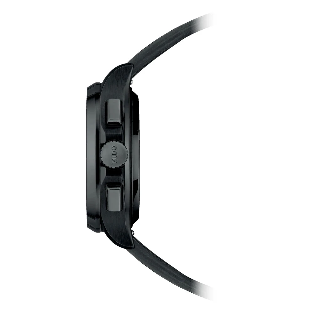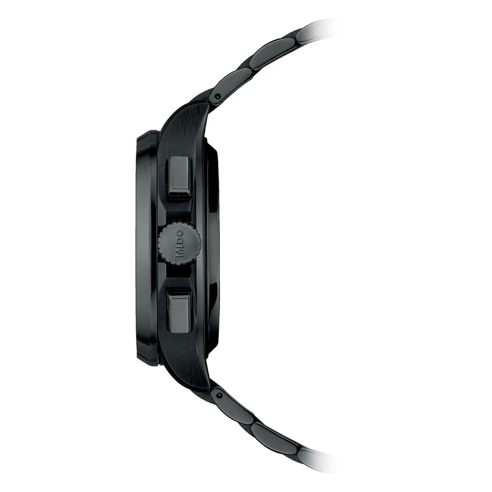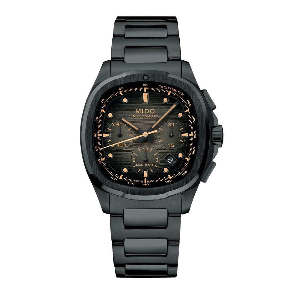 Stylově laděný šedý horizontálně kartáčovaný ciferník doplňuje černý ocelový náramek s PVD povlakem a skládací spona s tlačítky pro bezpečné a pohodlné zapínání. Mido Multifort TV Chronograph spojuje sportovní eleganci, moderní technologie a robustní provedení, které ocení milovníci výrazných a zároveň funkčních hodinek.