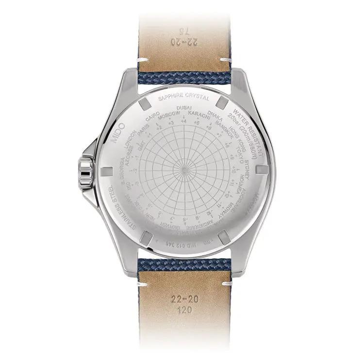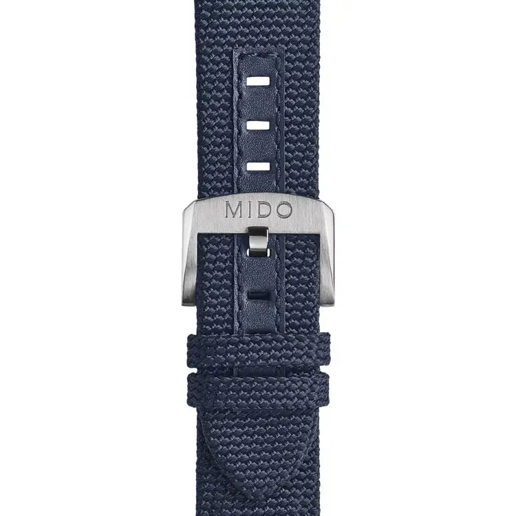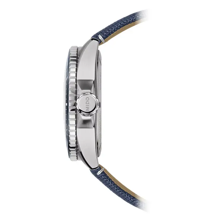 Čistý a odolný vzhled hodinek se projevuje i v detailu – modrý textilní řemínek s trnovou sponou zajišťuje pohodlné a bezpečné nošení. S vysokou vodotěsností 20 ATM (200 metrů) jsou hodinky vhodné nejen pro běžné denní nošení, ale i pro plavání a šnorchlování.