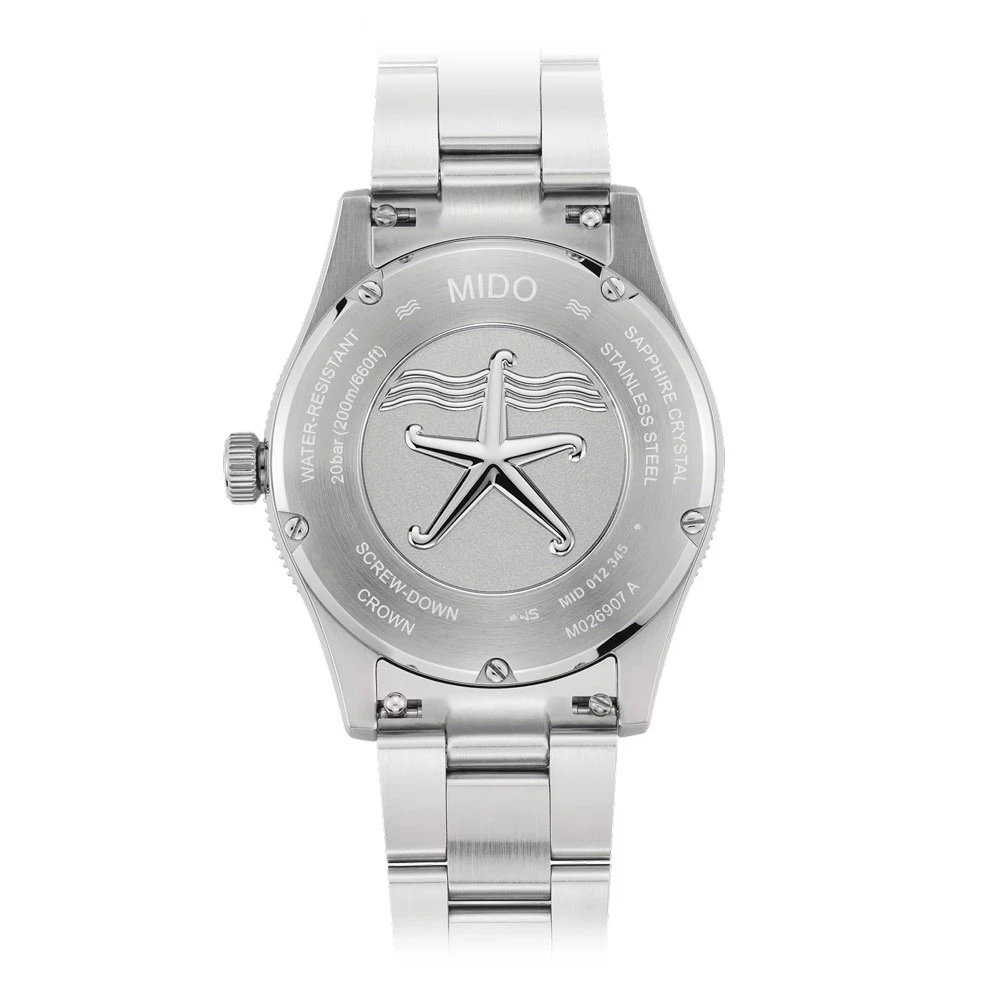 Model je poháněn inovativním automatickým kalibrem Caliber 72 (vývoj ETA A31.111) s rezervou chodu až 72 hodin a vybaven antimagnetickou pružinou Nivachron™, která zajišťuje dlouhodobou přesnost a spolehlivost. Vodotěsnost do 200 m spolu se šroubovací korunkou a zadním víkem s reliéfem mořské hvězdice odráží dědictví a odbornost Mido v oblasti potápěčských hodinek.
